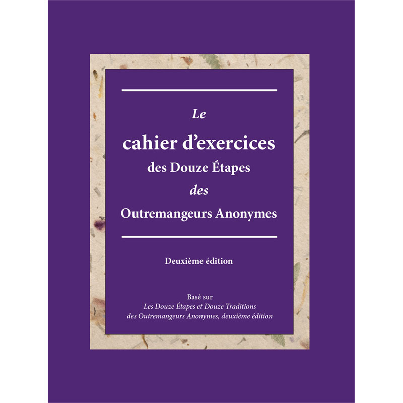 Le cahier d’exercices des Douze Étapes, deuxième édition est composé de questions basées sur le livre clé d’OA – Les Douze Étapes et Douze Traditions des Outremangeurs Anonymes, deuxième édition. Les références dans ce cahier, y compris les références des numéros de page, se réfèrent désormais directement au livre Les Douze Étapes et Douze Traditions des OA, deuxième édition. PLUS : La liste complète des questions trouvées dans le chapitre de la quatrième étape du nouveau 12-12, 2e d’OA est présentée ici – le tout dans un seul cahier d’exercices complet. Beaucoup ont trouvé qu’écrire sur les Étapes est plus instructif que de les travailler « dans sa tête ». Utilisez ce cahier pour guider votre voyage de découverte de soi à travers les Étapes. Copyright 2018, 2023 pour l’édition française. Couverture souple, 124 pages.